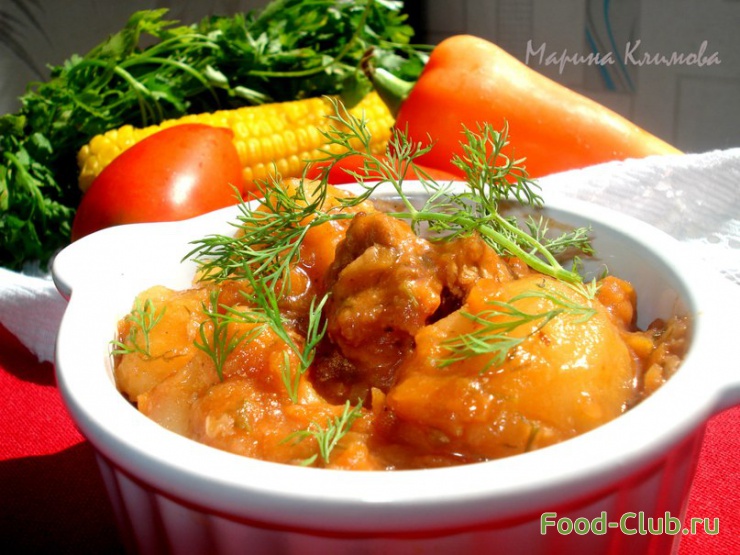 Жаркое с овощами и телятиной в сливочно-томатном соусе