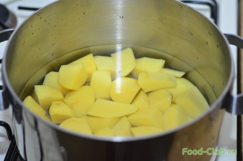 1. Картофель моем, чистим, нарезаем и отвариваем до готовности в подсоленной воде.