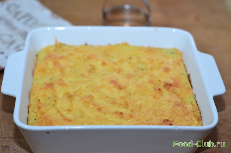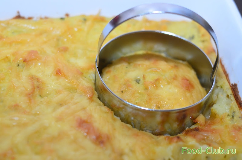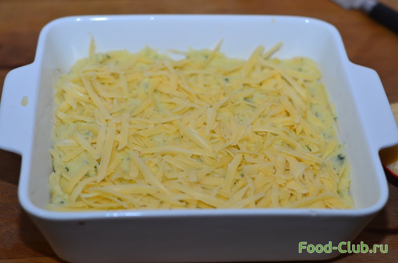 6. Пюре выкладываем в форму, посыпаем сверху тертым сыром и ставим в предварительно разогретую духовку.