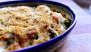 Этот потрясающе вкусный картофель можно подать к столу как гарнир, а можно кушать как полноценное блюдо. Получается очень вкусно, пальчики оближешь!Сначала разогреваем духовку. Нагреваем сковородку на среднем огне и растапливаем масло, добавляем в него муку и перемешиваем, пока не получим коричневый цвет. Солим, перчим, вливаем молоко и перемешиваем. Снимаем сковородку с огня и переливаем смесь в большую посуду.