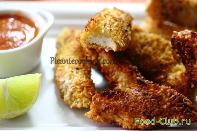 Cсылка на оригинальный рецепт: www.picantecooking.com/recipe/kurinye-nagetsy-v-kokosovoi-panirovke