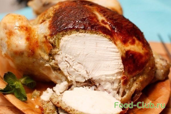 3. Вложите курицу в пакет для запекания и поставьте в духовку. Готовится такая курица чуть больше часа.