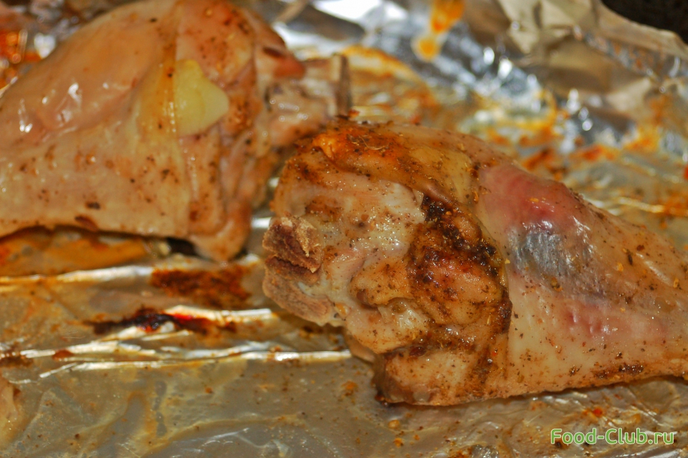 2. Заверните края фольги так, чтобы полностью укрыть мясо и поставьте в духовку. Готовьте минут 35-50, все зависит от вашей духовки, у меня электрическая. Отодвигая фольгу. проверяйте, проткнув вилкой. Если кровь не вытекает, то снимаем фольгу и снова ставим в духовку, пока не получим желаемую румяную корочку.