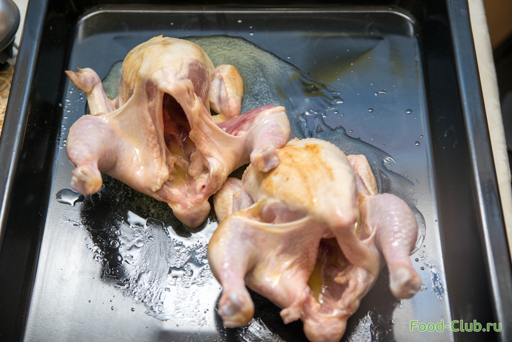 1. Разогрейте большую сковороду с растительным маслом, добавьте по 2 курицы за раз, обжарьте с двух сторон до золотистой корочки (советую прижимать курицу к сковороде, чтобы корочка была лучше). Уберите со сковороды, проделайте тоже самое с остальными 2 курицами.