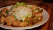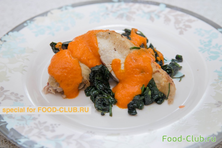 Подавайте курицу со шпинатом и кисло-сладким соусом.