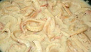 4. В мисочке смешиваем кетчуп и майонез, добавляем лук и хорошенько перемешиваем.