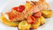 Разогреваем духовку до 180 градусов, берем форму, кладем в нее рыбку картошкой вверх и доводим до готовности в духовке. Это займет минут 15.