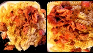 Отдельно приготовьте начинку. Отварите рис и яйца. Обжарьте мелко порубленные грибы, нарезанный полукольцами лук и потертую на крупной терке морковь. Все перемешайте, добавьте мелко нарезанные яйца, тертый сыр, майонез и рис, посолите, поперчите по вкусу и вновь хорошо перемешайте.