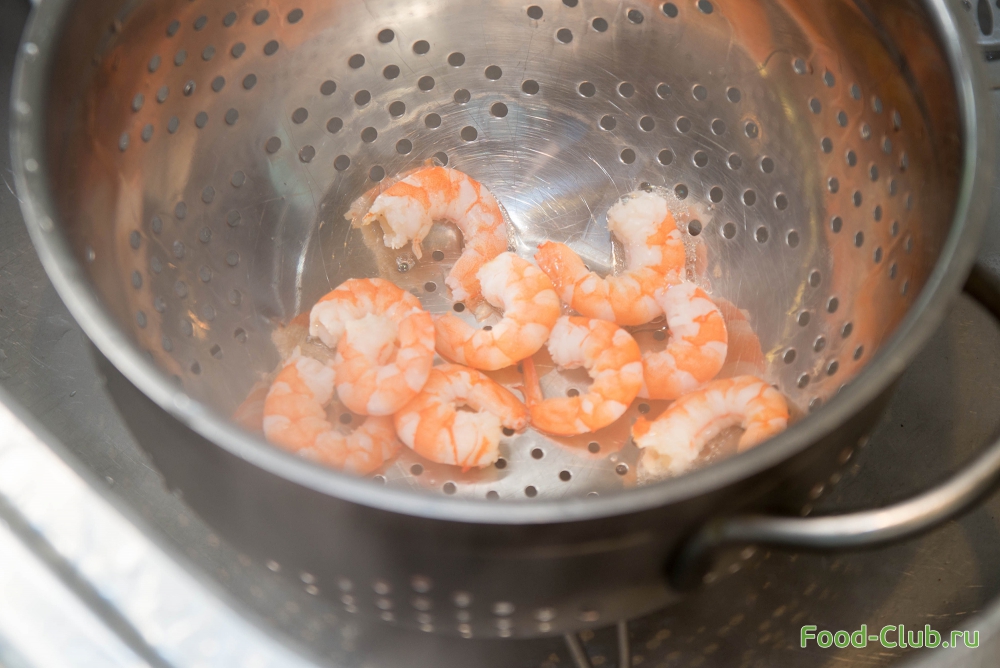 1. Отварите креветки в кипящей воде в течении 2 минут.