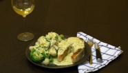 3. К этому блюду идеально подходит картофельно-яблочное пюре. (Готовите пюре как обычно, заменяя 1/4 часть картофеля чищенными яблоками, которые добавляете когда картофель почти готов и варите до мягкости яблок. А дальше все как обычно: измельчаете, приправляете сливочным маслом и сливками).