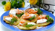 5. Готово! Подаем, посыпав измельченным свежим укропом, вместе со свежими овощами. Еще, как дополнение, отлично подойдет жареный кольцами лук, но это для тех, кто не против жареного