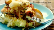 Рыбу немного поливаем молоком и запекаем на фольге 10 минут в разогретой духовке, затем чистим от косточек и крошим филе в глубокую миску.Добавляем в миску к рыбе нарубленную зелень. Добавляем в фарш измельченную цедру, соль, перец и картошку.