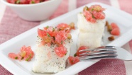 Рыба, запеченная с грибами и черри под сливками