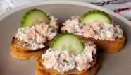 Вкуснейшая закуска, которая порадует всех любителей рыбных блюд. Готовить ее очень легко, а выглядит она изумительно! Если у вас будет много гостей, то лучше удвоить количество ингредиентов, потому что съедается эта красота очень быстро.