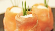3. Получившейся массой начиняем яйца, поверх украшаем семгой и огурцами. Раскладываем яйца на сервировочной тарелке и подаем с маринованным имбирем и соевым соусом. Приятного Вам вкушения!