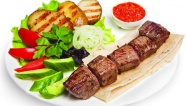 Мясо нарезаем крупными кусками, складываем в кастрюлю, добавляем лук, нарезанный кольцами, соль, перец и базилик. Заливаем масло и вино, тщательно перемешиваем.Мясо ставим в холодное место минимум на 5 часов, потом жарим на углях.