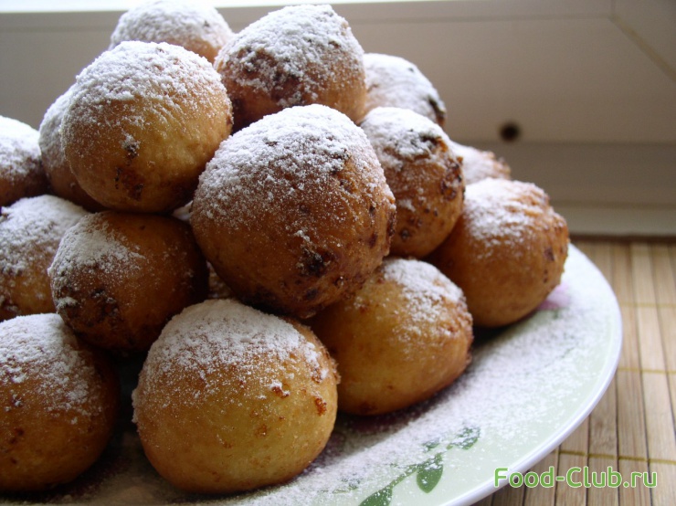 2. В кастрюльке с высокими бортами разогрейте масло для фритюра. Из теста скатайте небольшие шарики, обваляйте их в муке и порциями обжарьте их во фритюре до золотистого цвета.