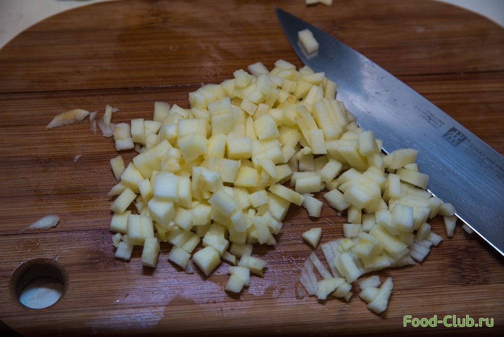 • Яблоко очистите от кожуры и нарежьте на небольшие кусочки.