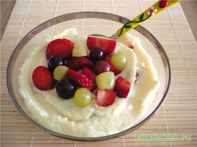 Полезная еда может быть вкусной! Долой сахар, да здравствуют фрукты!Сначала кипятим молоко, а потом тоненькой струйкой всыпаем манную крупу, постоянно помешивая. Натираем яблоко на мелкой терке и добавляем его в кастрюльку, хорошенько перемешиваем и варим еще 3 минутки.