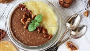 Достаньте кашу и посыпьте оставшимися грецкими орехами.