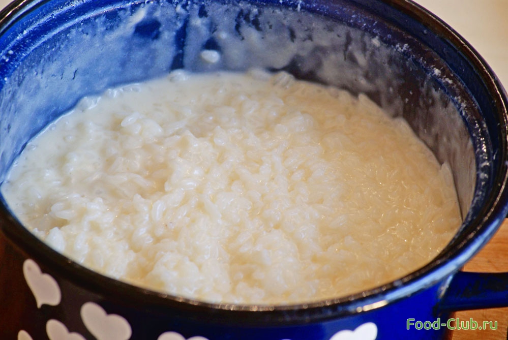 2. Добавьте в рис теплое молоко, сахар и ванильный сахар, накройте кастрюлю крышкой, убавьте до минимума огонь и готовьте 5 минут. Снимите с плиты.