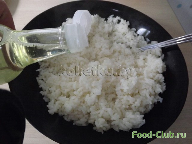 3. В рис добавляем специальный уксус для суши, чтобы он был более вкусным и рассыпчатым.