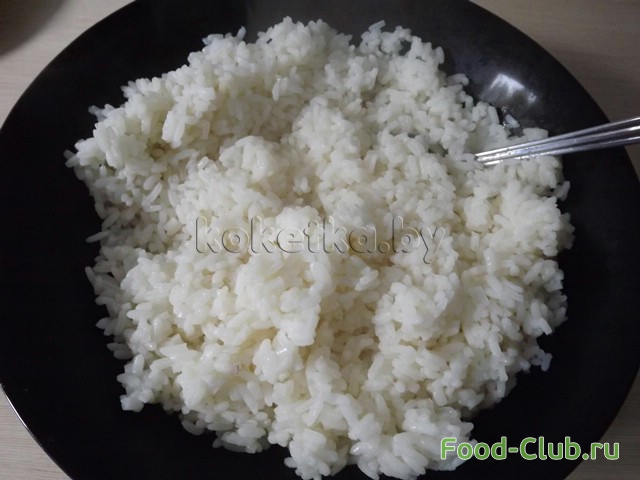 1. Отвариваем рис в подсоленной воде до полной готовности.