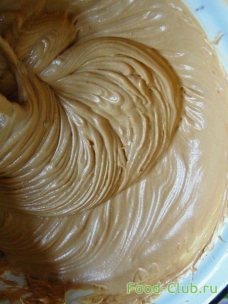 4. Готовим крем, для этого взбиваем масло, добавляем вареную сгущенку и все вымешиваем до однородности.