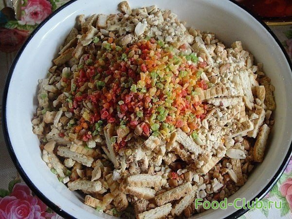 3. Перемешиваем печенье с орехами. По желанию можно добавить пару ст. ложек цукатов. Все перемешиваем.
