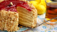 4. Ставим форму в предварительно разогретую духовку и выпекаем до готовности 50-60 минут. Степень готовности определяем зубочисткой. При выпекании поверхность торта потрескается, но так и должно быть. Торт вынимаем, немного остужаем в форме, затем извлекаем и полностью остужаем на решетке.