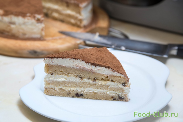 Поставьте торт в холодильник (желательно она ночь). Сверху можно посыпать какао-порошком или тертым шоколадом.