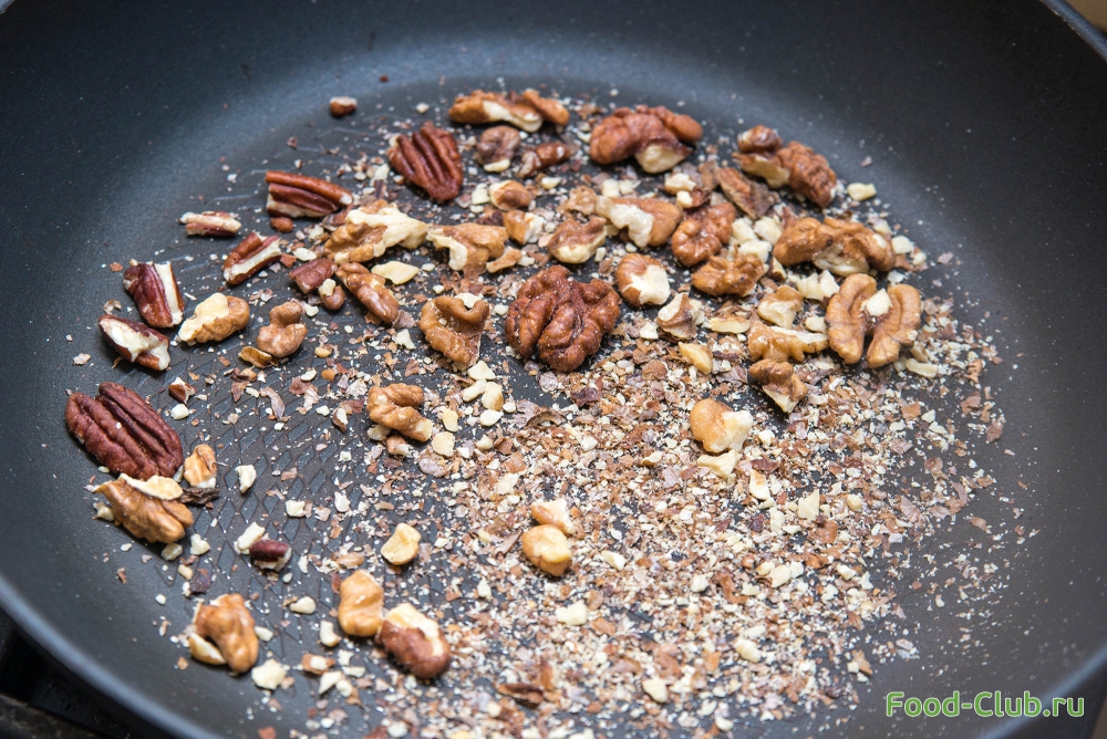 8. Орешки рекомендую слегка поджарить на сухой сковороде. Затем порубите на небольшие кусочки.