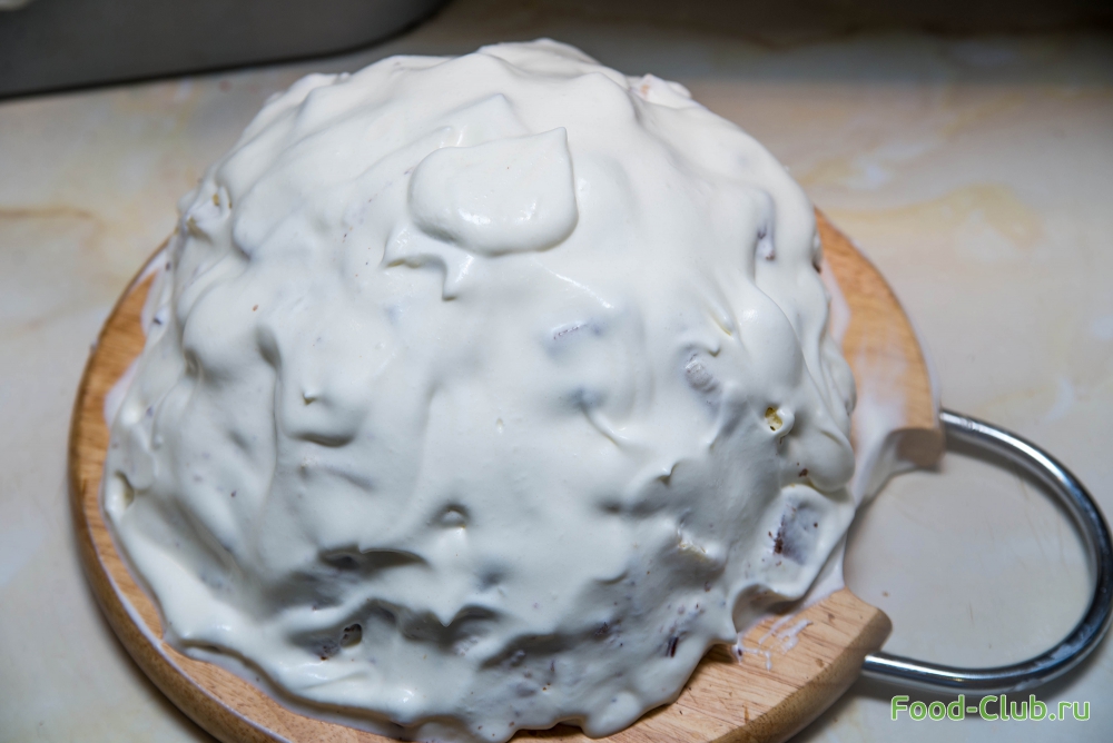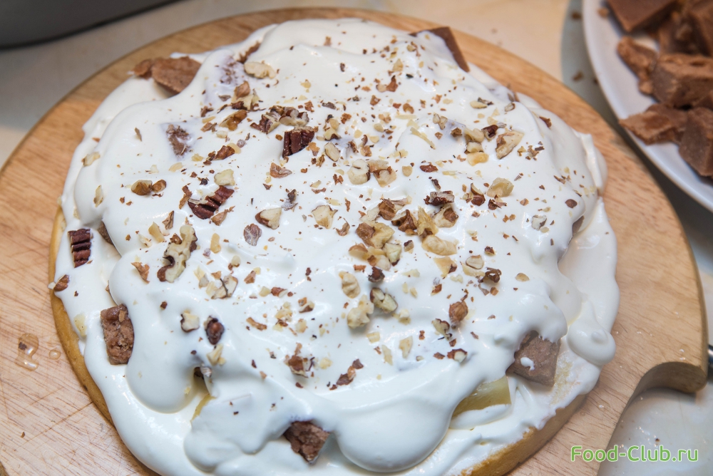 12. Затем снова намажьте кремом и посыпьте частью орешков.