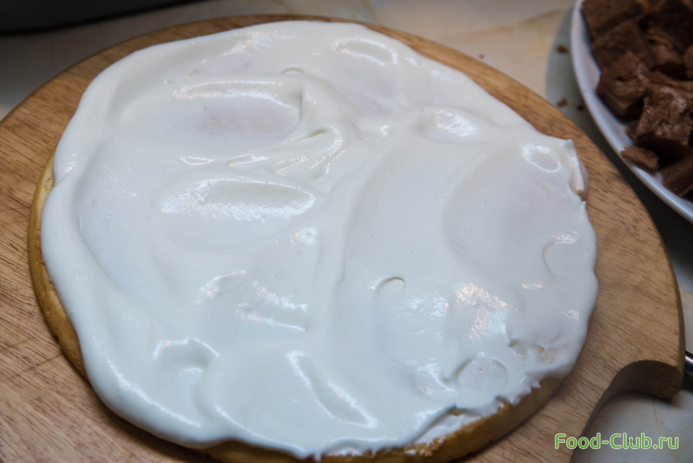 10. Собираем торт. Торт будет собирать в форму горки. На основу торта намажьте крем.