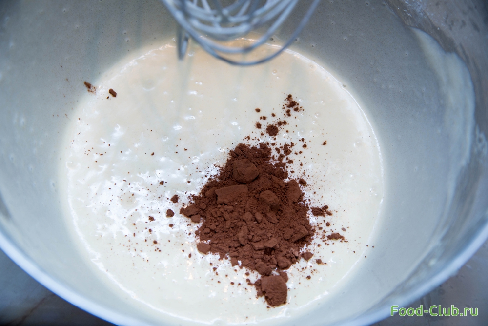 4. В оставшееся тесто добавьте какао порошок и взбейте до однородности.