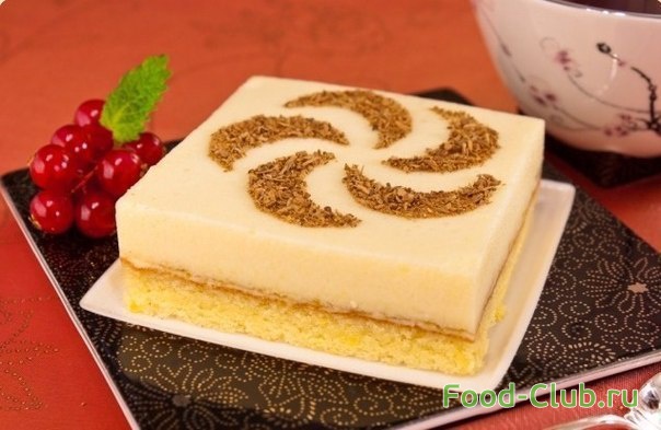 5. Полученную начинку выложите на бисквит и поставьте на ночь в холодильник. Затем разрежьте на пирожные.