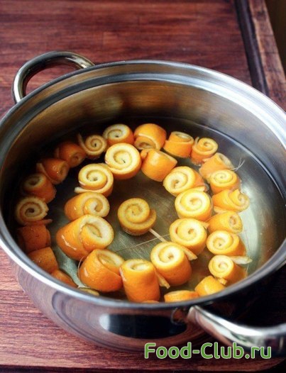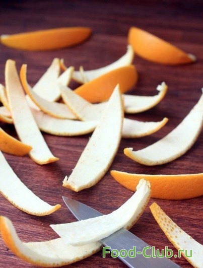 2. Если кожура апельсина тонкая, то внутреннюю часть можно оставить, если толстая – то аккуратно ножом снимаем белую кожицу, чтобы завитки легче было заворачивать.