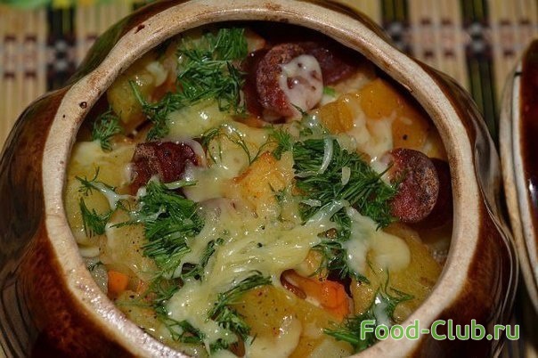 3. Смешайте все ингредиенты, выложите в горшочки и поставьте в духовку на 40 минут. Выключите духовку, достаньте горшочки, добавьте сыр и зелень, поставьте снова в духовку на 10-15 минут.