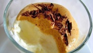 Сливки смешиваем вместе с кофе и сахаром, доводим до кипения, добавляем ванилин. Постоянно помешиваем, чтобы сахар растворился, потом снимите с огня, добавьте смесь с желатином и перемешайте, чтобы он полностью растворился.