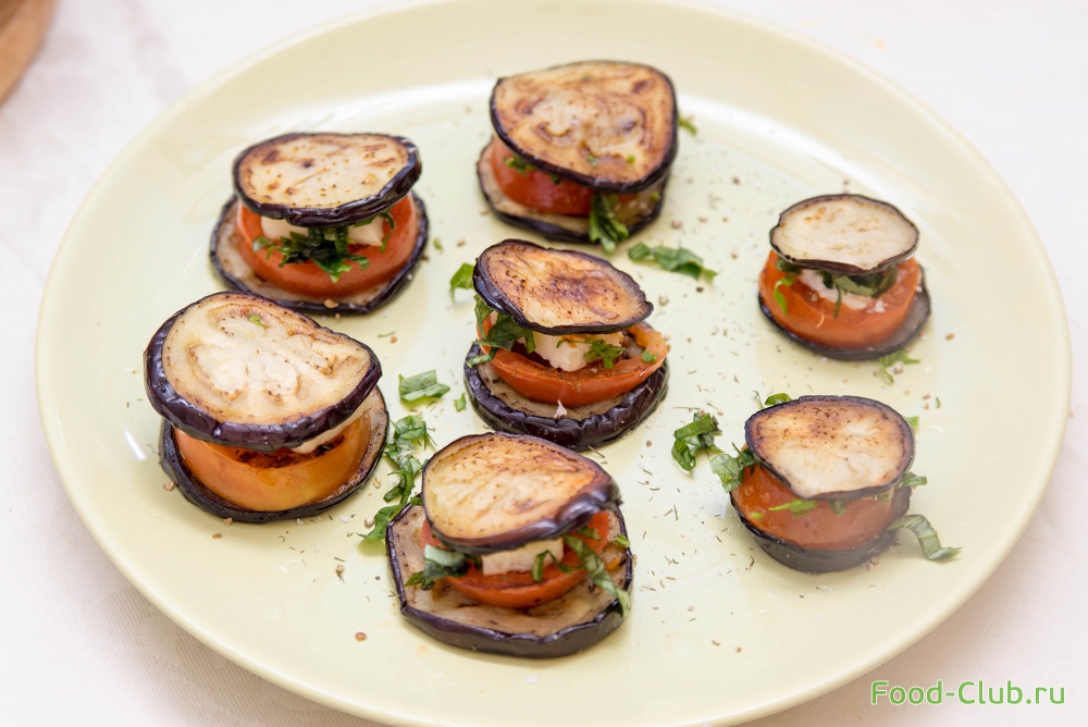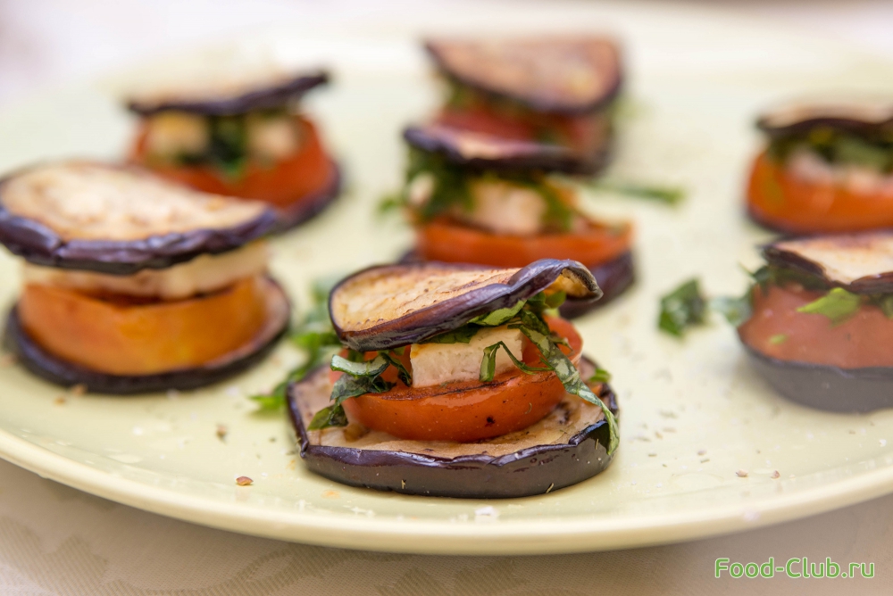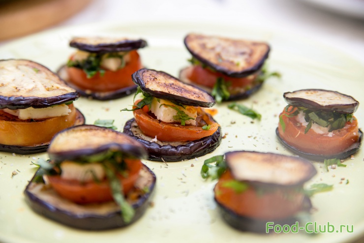 Пирамидки с баклажанами, помидорами и сыром